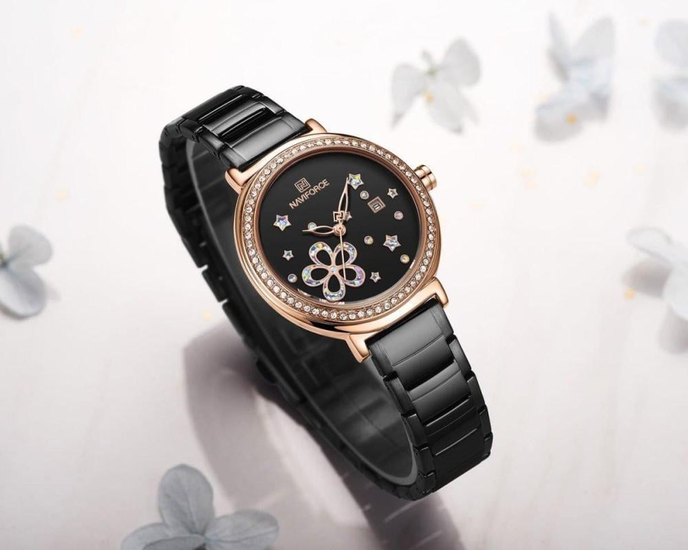 تتميز الساعة الموجودة في الصورة بأنها ساعة يد نسائية من ماركة NAVIFORCE، طراز NF5016. تتميز الساعة بالمواصفات التالية:
