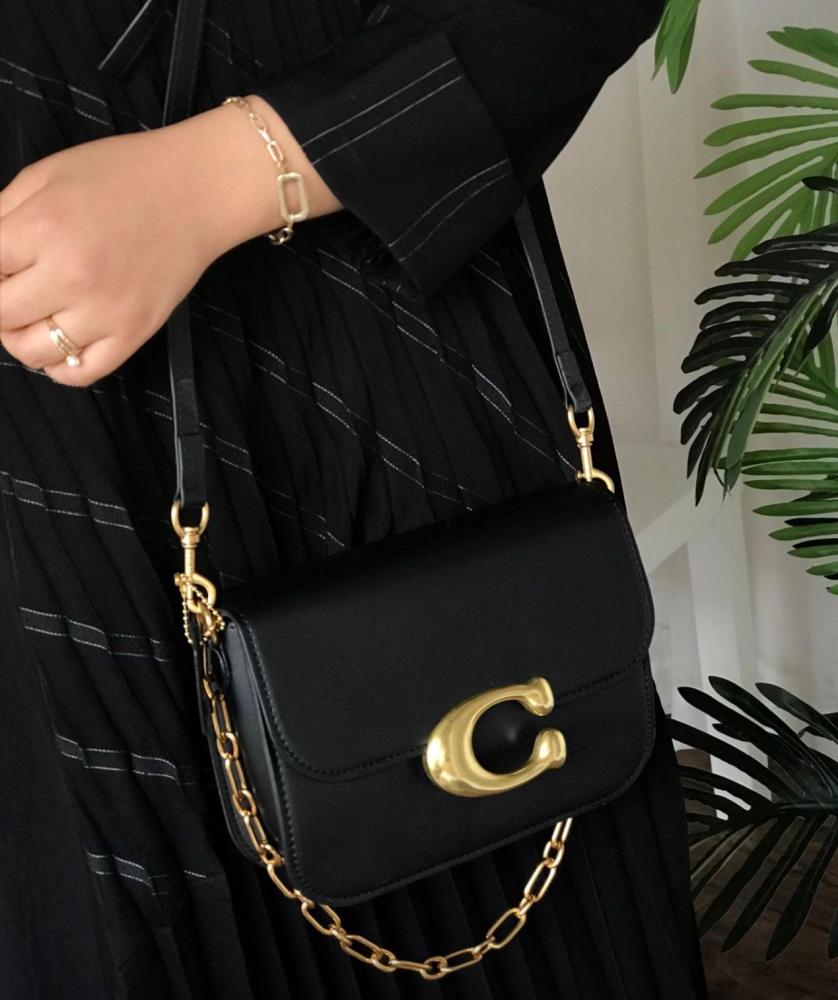 حقيبة الكتف الظاهرة في الصورة هي حقيبة "أيدول" من كوتش (Coach Idol Bag).